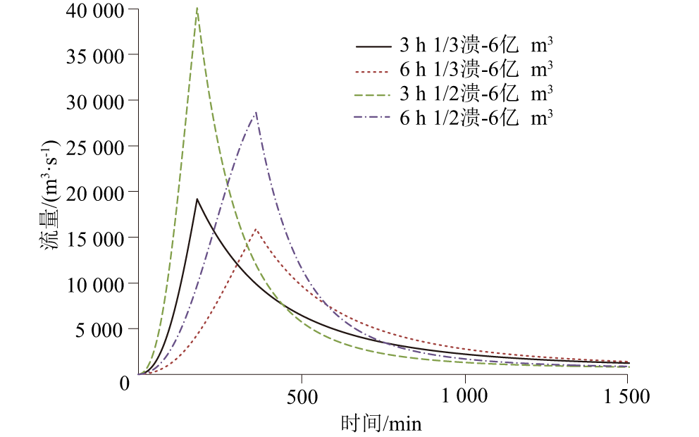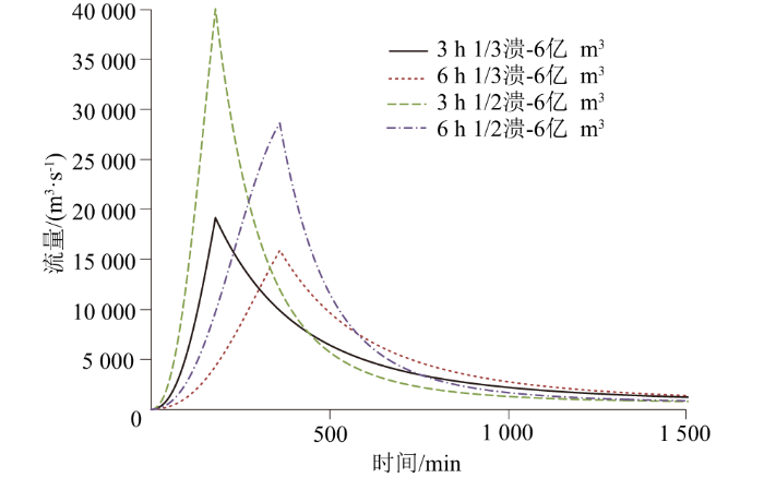 表2 不同溃决历时坝下游不同位置洪峰流量成果Table 2 Flood peak flow at different stationsdownstream of the barrier lake |