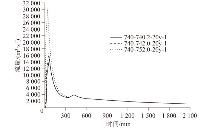 表1 不同起溃水位溃坝洪水计算方案Table 1 Calculation scheme of dam-breaking flood at different initial water levels |