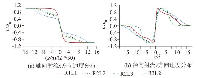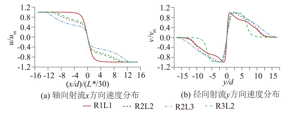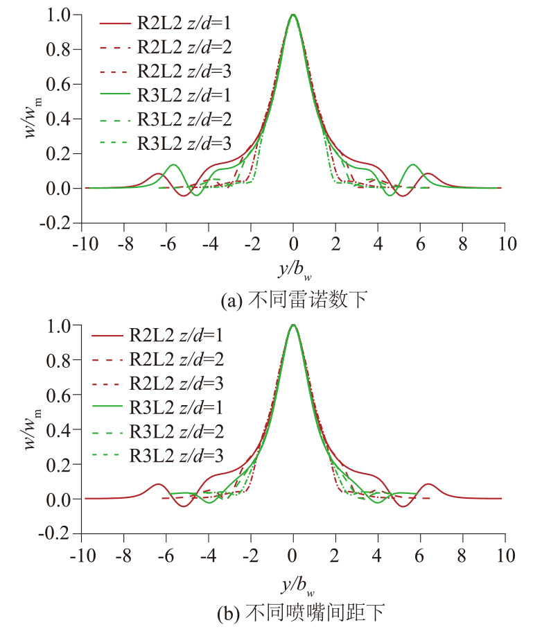 In order to reveal the characteristics of radial and vertical jets in the opposite wall jet, renormalization group k-ε model is adopted to simulate complex three-dimensional opposed jet. The partition structure and expansion rate of radial and vertical jets are analyzed.The influences of initial Reynolds number and nozzle distance on jet expansion rate are discussed.The results show that radial jet and vertical jet have similar regional division, however, vortices in different directions formed in the flow field have different influence ranges. The initial Reynolds number has no obvious effect on the expansion rate of the radial jet. The nozzle distance has a significant effect on the expansion rates of radial and vertical jets. The larger the nozzle distance is, the larger the expansion rates of the radial and vertical jets are. Meanwhile, the nozzle distance has a certain influence on the jet development. Near nozzle spacing shortens the time for jet to reach the maximum velocity point, and speeds up the development process.