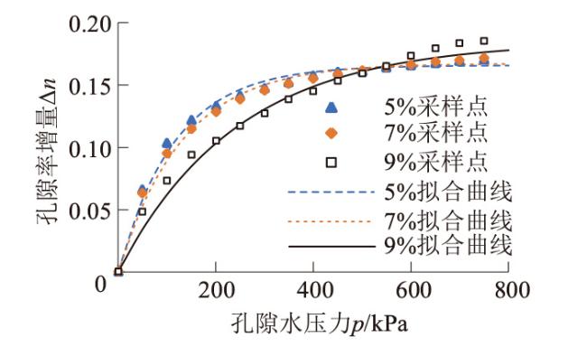 3.4.1 有效孔隙率增量Δn与孔隙水压力p的关系曲线