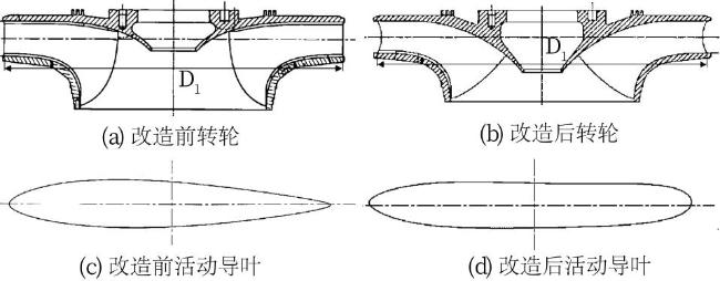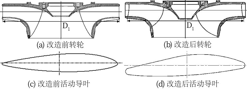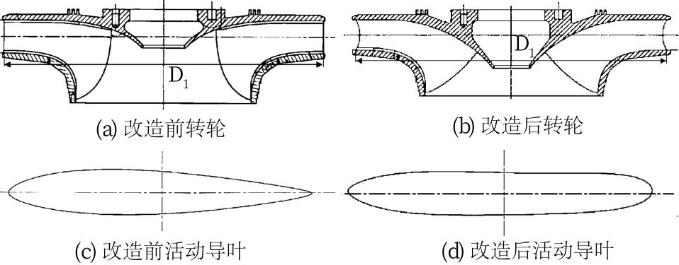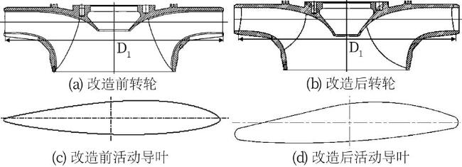 图4 黑麋峰抽水蓄能机组转轮与活动导叶结构改造前后对比Fig.4 Structural layout of runner and movable guide vane of Heimifeng pumped storage unit before and after rehabilitation |