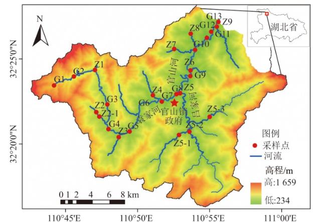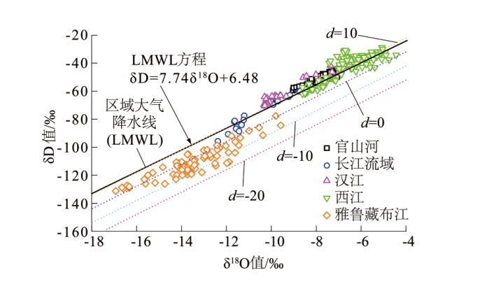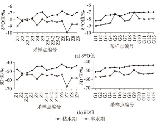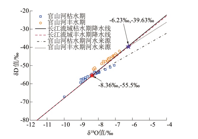 表1 官山河流域水体氢氧同位素组成及影响因素基本信息Table 1 Composition and influencing factors of hydrogen and oxygen isotopes in the Guanshan River Basin |