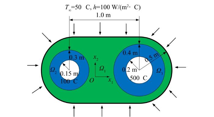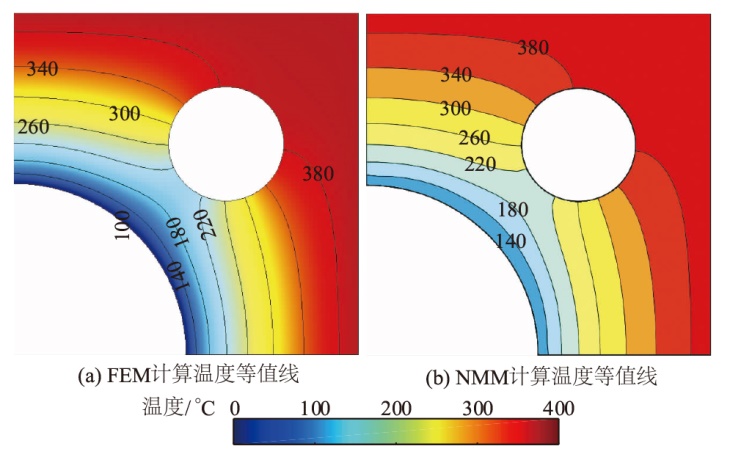 表4 界面圆环上的温度计算结果及对比Table 4 Calculated temperature results and comparison along interface ring |