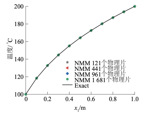 表1 物理片沿着x1方向的温度Table 1 Temperature distribution along x1 direction with different numbers of physical patches |