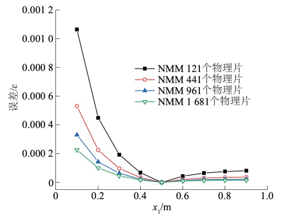 图7 解析解和不同物理片NMM计算的温度相对误差Fig.7 Relative errors of temperature between NMM results and analytic solution with different physical patches |