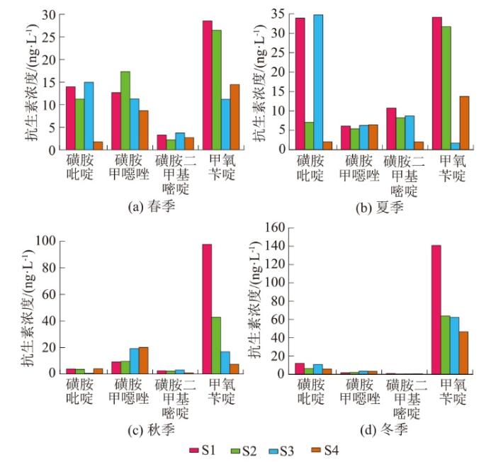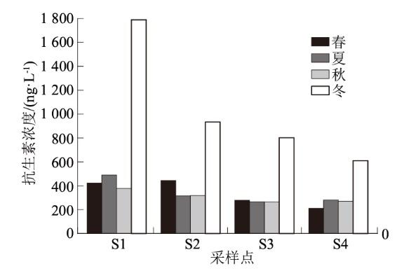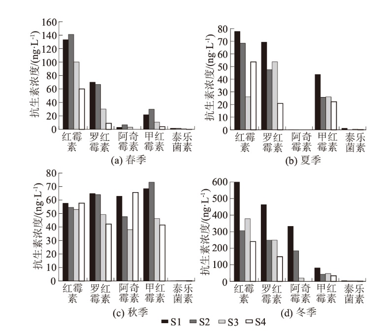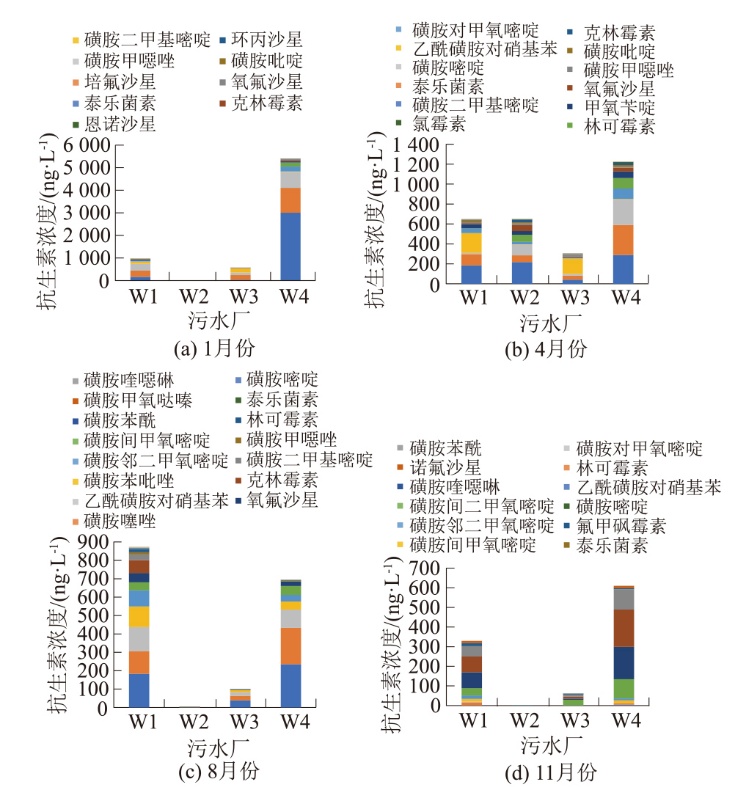 表2 污水处理厂尾水抗生素浓度Table 2 Antibiotic concentrations in effluents from wastewater treatment plantsng/L |