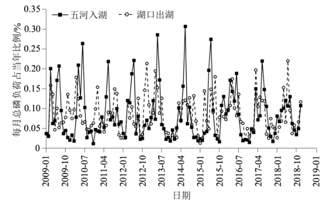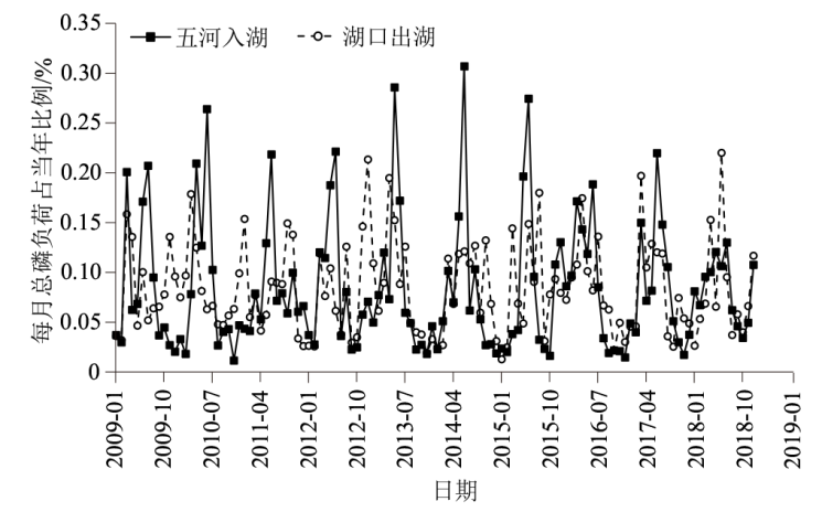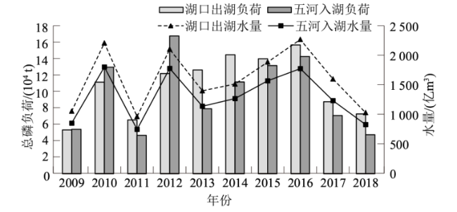 2.2 入出湖总磷年负荷变化特征