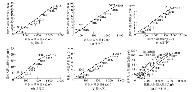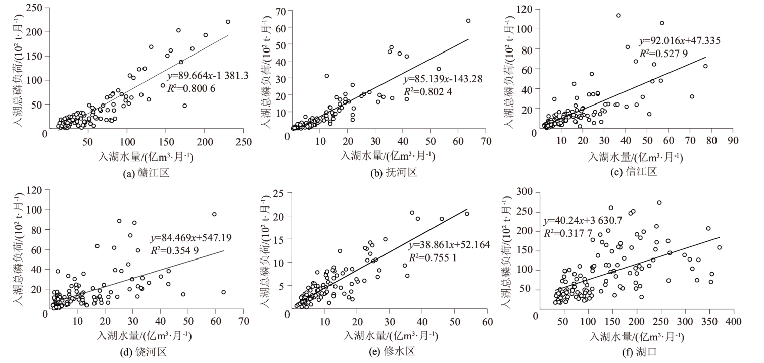 表2 入出湖总磷浓度与各水资源区水量的相关关系Table 2 Coefficients of correlation between inflow and outflow TP concentrations and water volumes in different water zones |