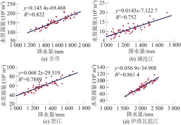 图2 保山市年降水量与水资源量年际趋势Fig.2 Interannual trends of precipitation and total water resources in Baoshan City |