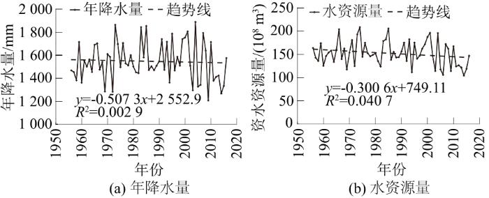 表1 1956—2016年均降水量及水资源量统计特征Table 1 Statistical characteristics of annual precipitation and water resources (1956-2016) |