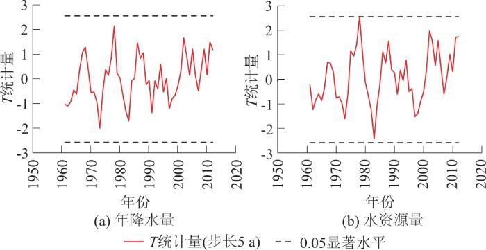 | 年限 | 降水量倾向率/(mm·a-1) | 降水量M-K统计量 | 水资源量倾向率/(108 m3·a-1) | 水资源量M-K统计量 | |||||||||||||