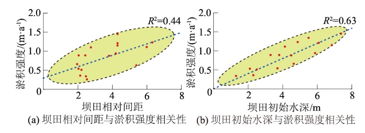 [12]通过研究揭示了坝田淤积厚度与淤积时间和泥沙粒径之间的关系。孔祥柏等